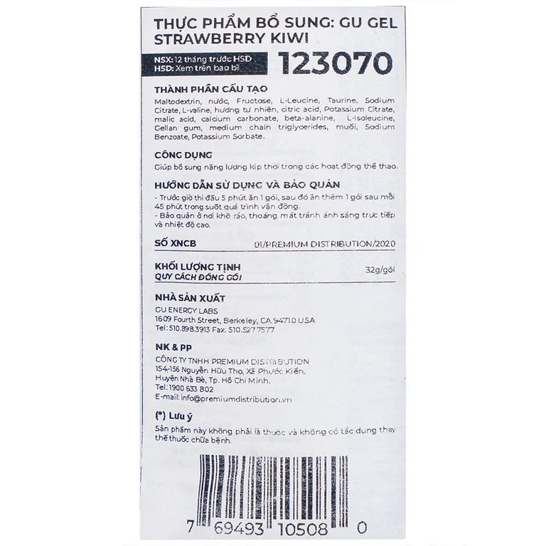 Cụ thể, một gói GU Roctane Energy Gel Strawberry Kiwi có chứa: