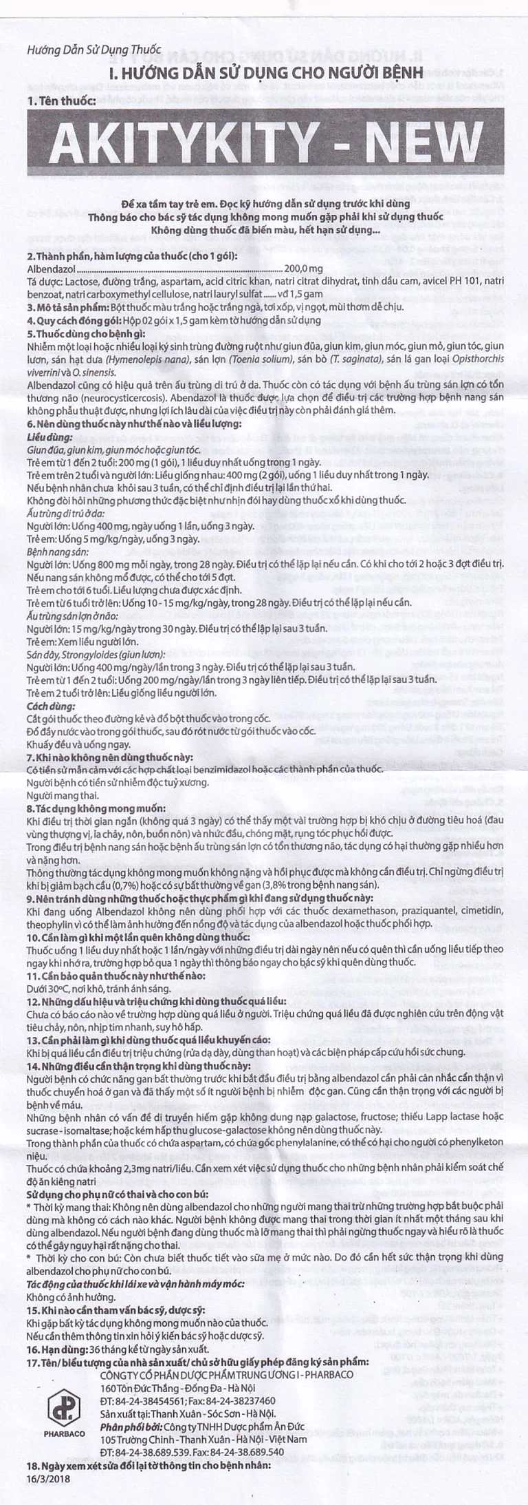 Cách dùng Hỗn dịch uống Akitykity-New 200mg
