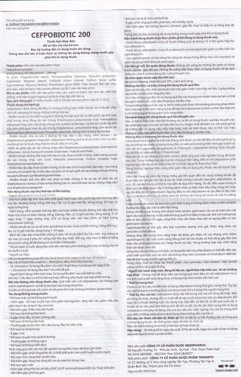 Cách dùng Thuốc Cefpobiotic 200mg