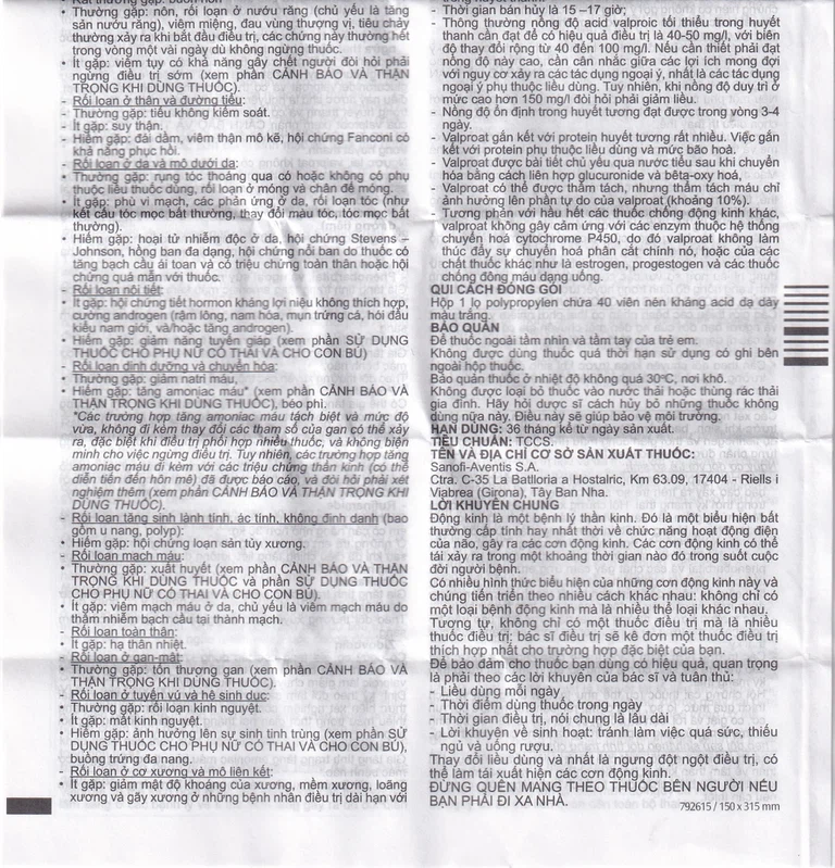 Dùng liều 20mg/kg/ngày, trong các trường hợp nặng có thể tăng liều dùng nhưng chỉ với điều kiện có thể theo dõi được nồng độ thuốc valproat trong máu ở những bệnh nhân này dùng liều trên 40mg/kg/ngày, phải theo dõi các thông số về huyết học và sinh hóa lâm sàng.