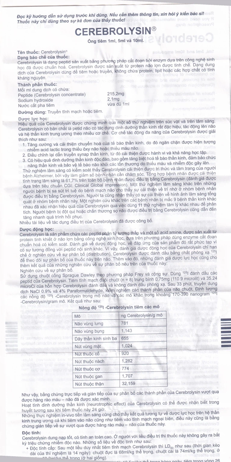 Nồng độ Cerebrolysin tiêm các mô: