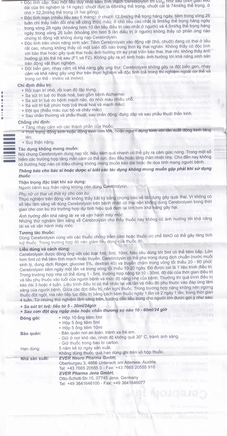 Cách dùng Thuốc tiêm Cerebrolysin