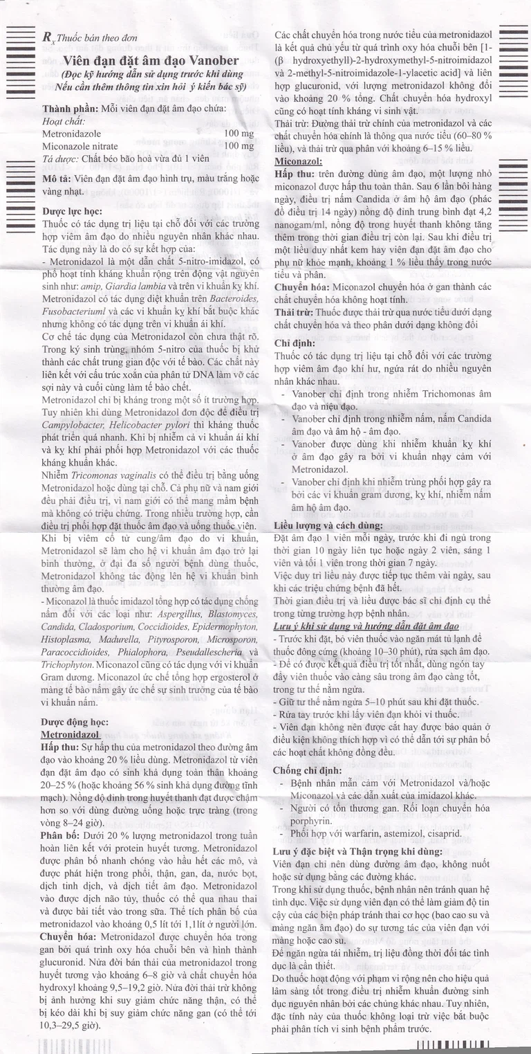- Vanober được dùng khi nhiễm khuẩn kỵ khí ở âm đạo gây ra bởi vi khuẩn nhạy cảm với Metronidazol.