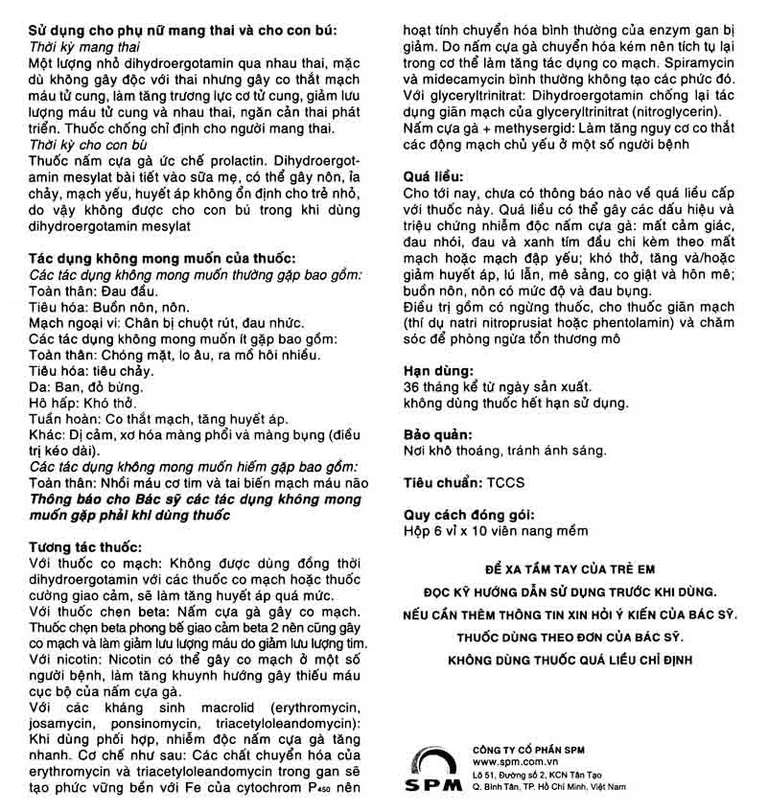 Thuốc nấm cựa gà ức chế prolactin. Dihydroergotamin mesylat bài tiết vào sữa mẹ, có thể gây nôn, ỉa chảy, mạch yếu, huyết áp không ổn định cho trẻ nhỏ, do vậy không được cho con bú trong khi dùng dihydroergotamin mesylat.