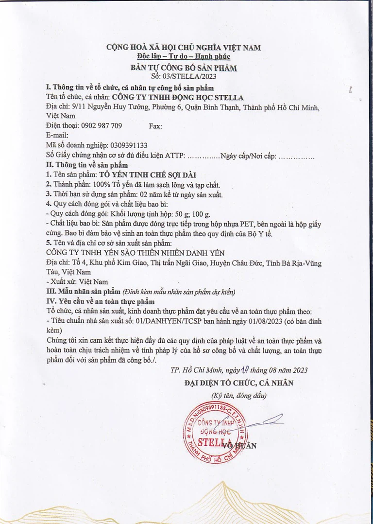 Tổ yến đã làm sạch lông và tạp chất | 100% |