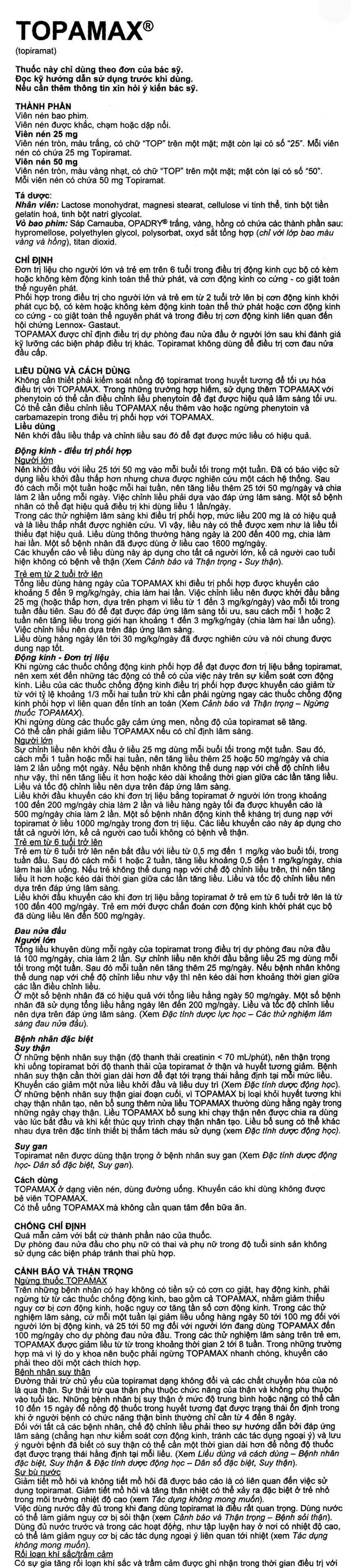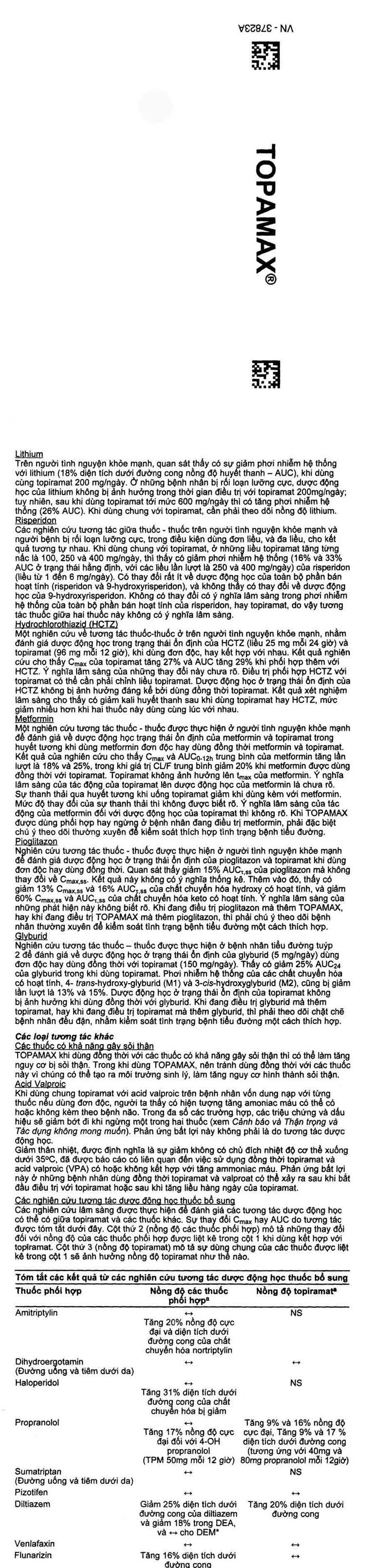Digoxin: Trong nghiên cứu đơn liều, diện tích dưới đường cong (AUC) của nồng độ digoxin trong huyết thanh giảm 12% khi dùng đồng thời với topamax.