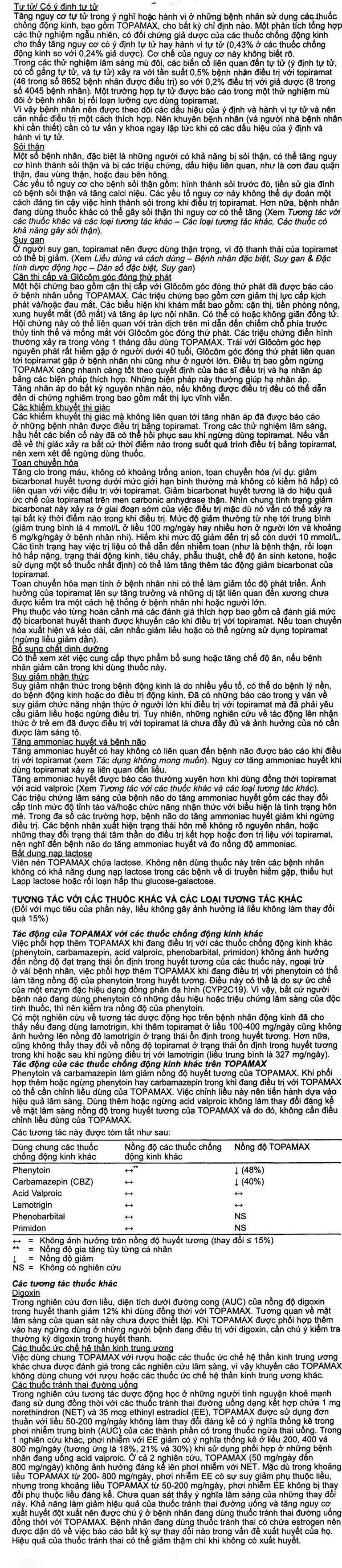 Rối loạn khí sắc trầm cảm: Có sự gia tăng rối loạn khí sắc và trầm cảm được ghi nhận trong thời gian điều trị với Topamax.
