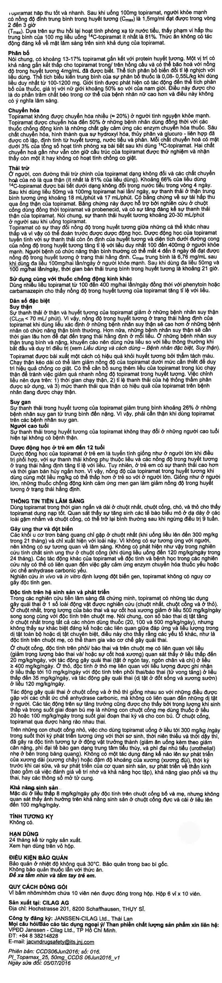 Ở người, con đường thải trừ chính của topiramat dạng không đổi và các chất chuyển hoá của nó là qua thận. Sự thanh thải huyết tương khoảng 20 – 30ml/phút ở người sau khi uống topiramat.