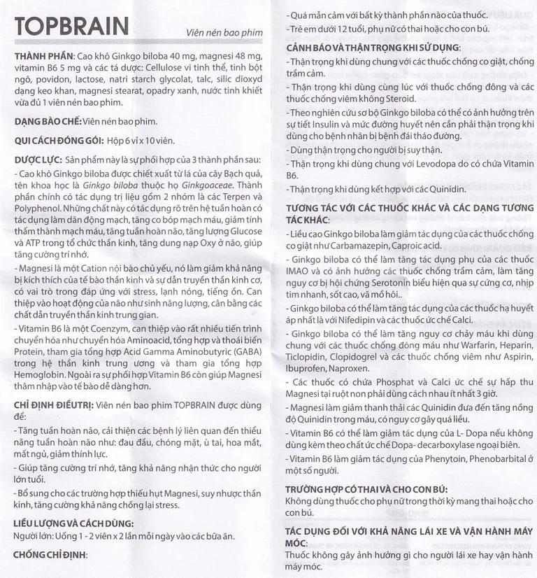 Thành phần của Thuốc Topbrain