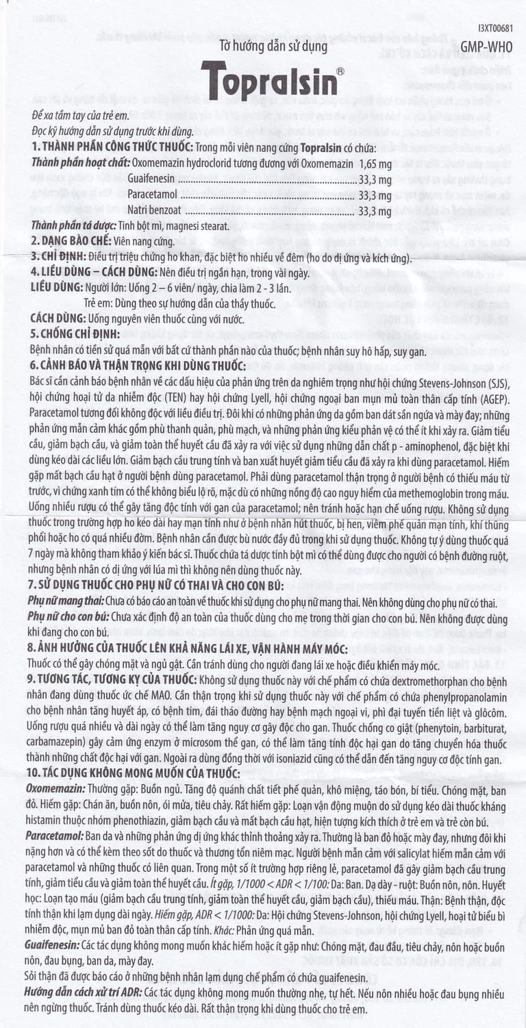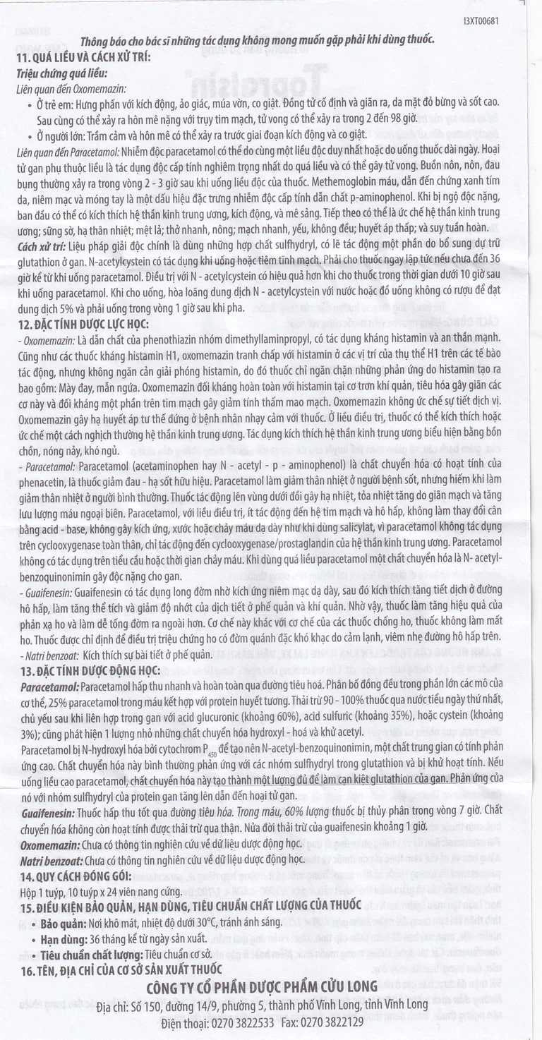 Thuốc có thể gây chóng mặt và ngủ gật. Cần tránh dùng cho người đang lái xe hoặc điểu khiển máy móc.
