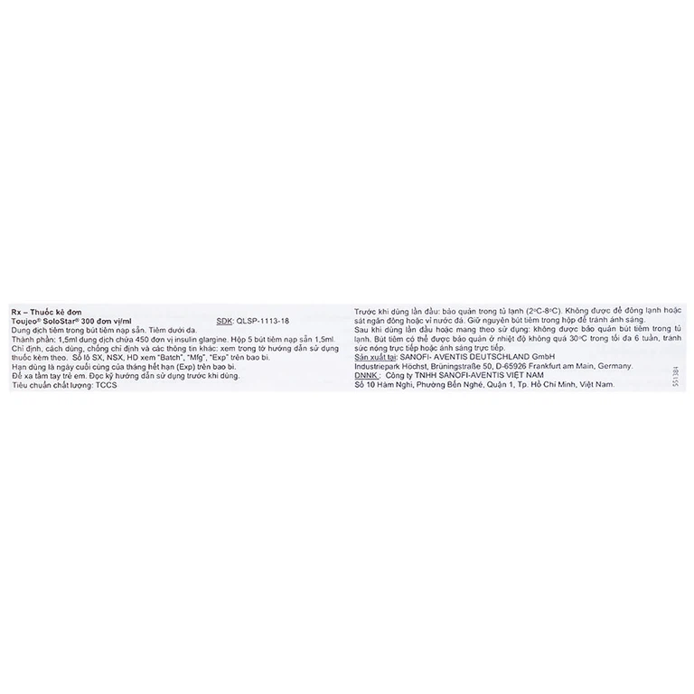 Thành phần của Thuốc tiêm Toujeo Solostar 300U/ml