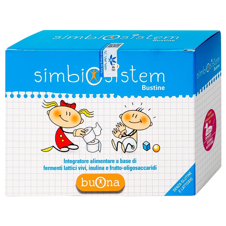 Buona Simbiosistem Bustine là sản phẩm men vi sinh đường uống dành cho trẻ đến từ thương hiệu Buona – Ý. Sản phẩm là sự cộng hưởng giữa nguồn chất xơ từ inulin được làm giàu oligofructose với bằng sáng chế độc quyền – Orafti® synergy 1 (hãng BENEO GmbH) và 10 tỷ lợi khuẩn Lactobacillii bào gồm Lactobacillus acidophilus La-14 (ATCC: SD5212) và Lactobacillus plantarum Lp-115 (ATCC: SD5209).