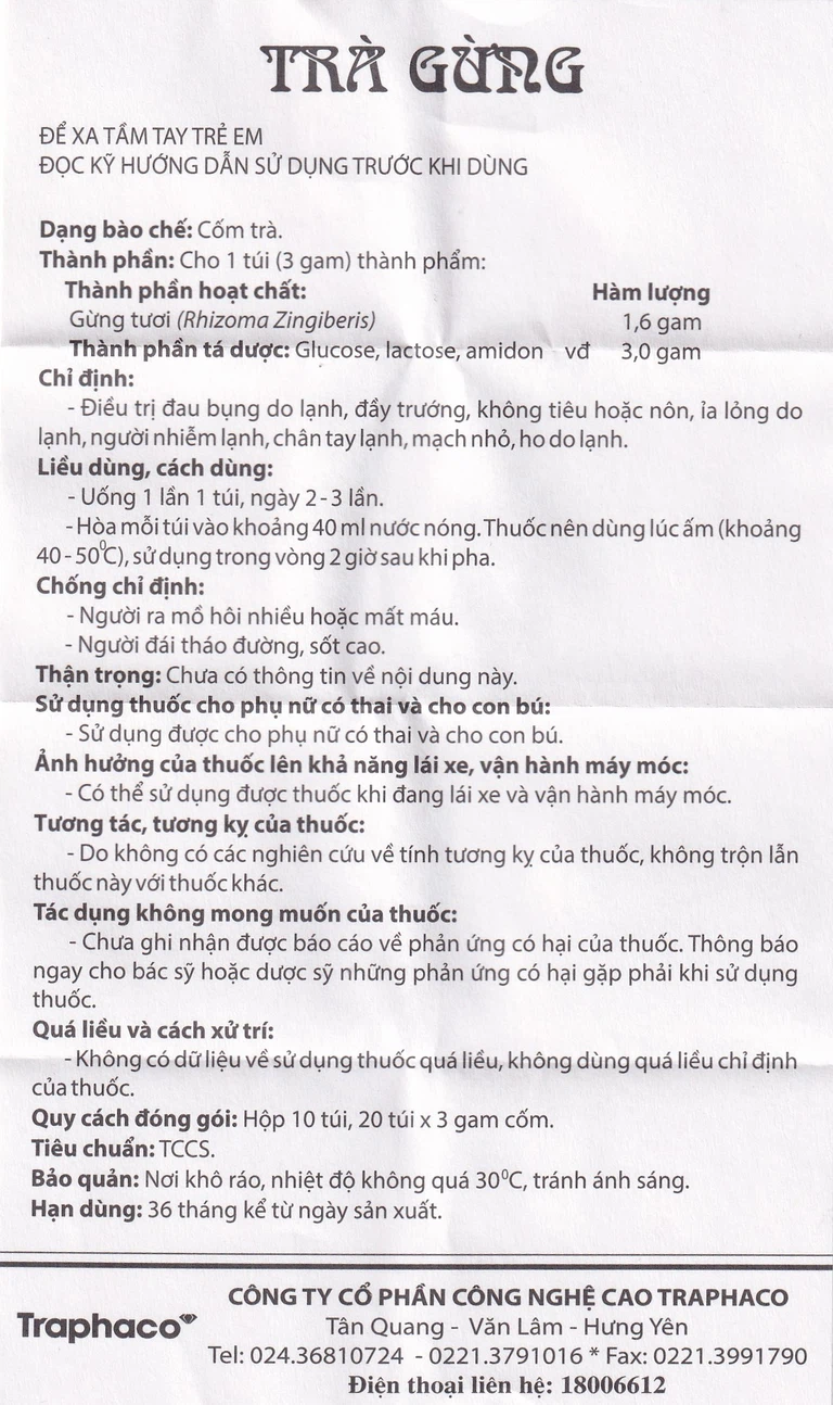 Trà Gừng Traphaco được chỉ định dùng trong các trường hợp sau: