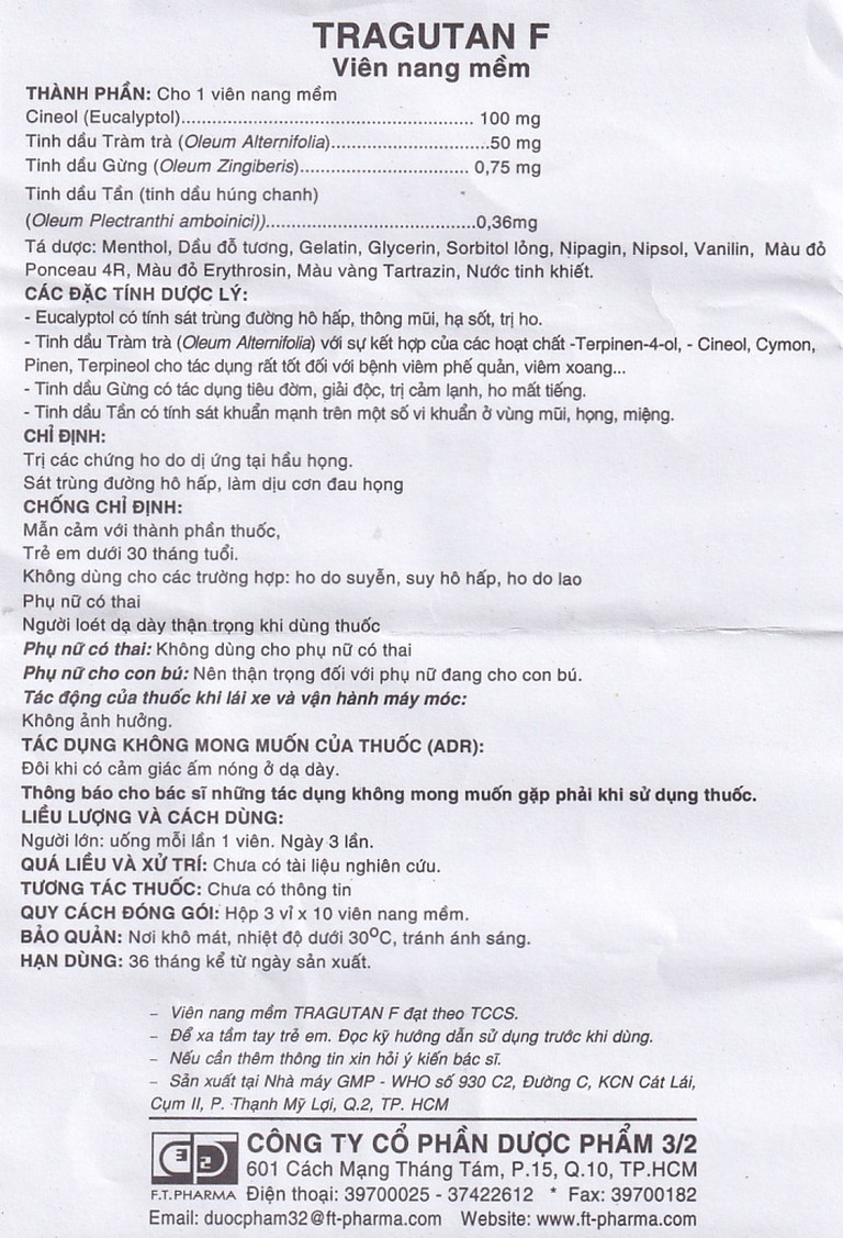 Thuốc Tragutan.f Oval được chỉ định dùng trong các trường hợp sau: