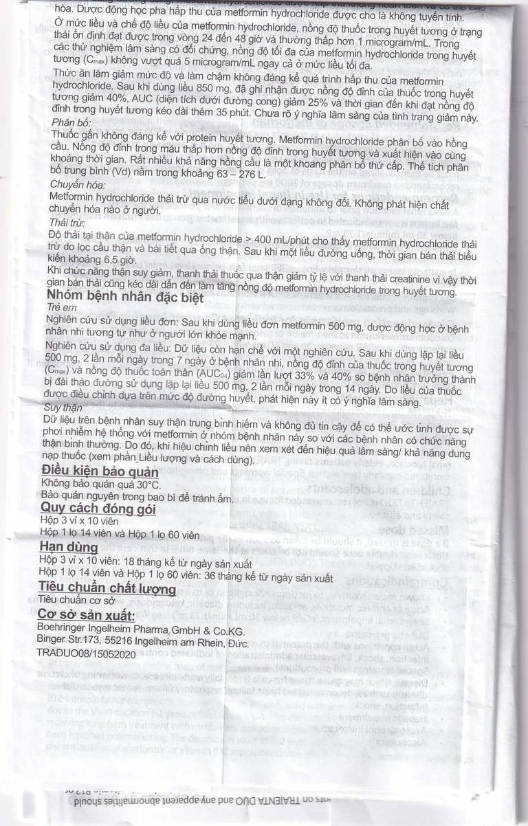 Thuốc Trajenta Duo 2.5mg/850mg Boehringer điều trị đái tháo đường típ 2 (14 viên)
