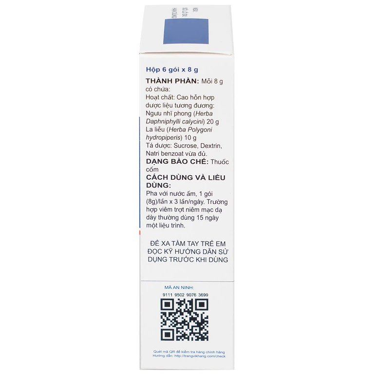 Thuốc cốm pha với nước ấm dùng đường uống.