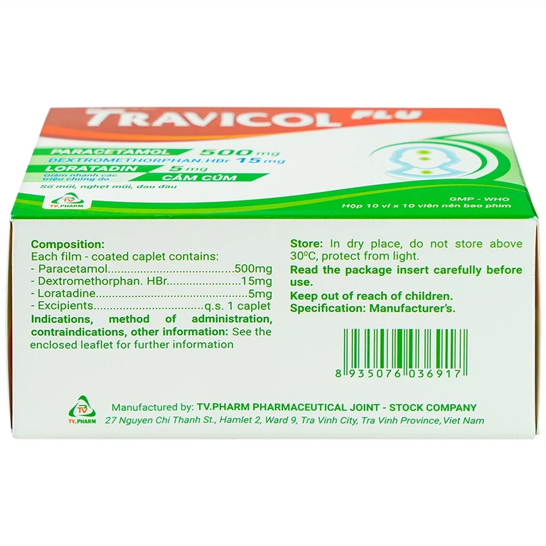 Thuốc Travicol flu điều trị các triệu chứng của cảm cúm như:
