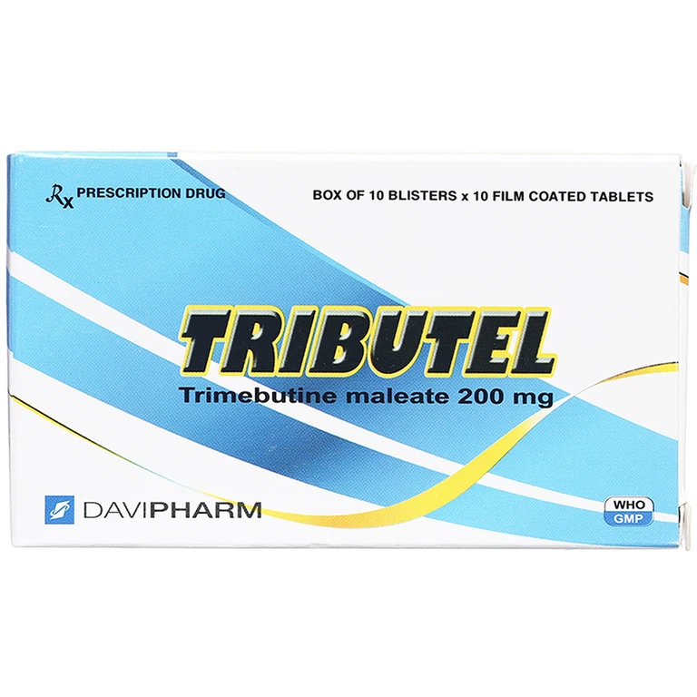 Thuốc Tributel được sản xuất bởi công ty cổ phần dược phẩm Đạt Vi Phú, có thành phần chính là Trimebutine. Thuốc Tributel được chỉ định trong điều trị các chứng đau do rối loạn chức năng đường tiêu hóa, dạ dày, ruột non, ruột già và đường mật; co thắt và trào ngược thực quản (ợ hơi, nôn, khó nuốt, nấc…); Hội chứng đại tràng kích thích và co thắt đại tràng (đau quặn bụng, đầy hơi, tiêu chảy hoặc tiêu chảy xen kẽ táo bón). Thuốc Tributel được bào chế dưới dạng viên nén bao phim. Hộp 10 vỉ x 10 viên.