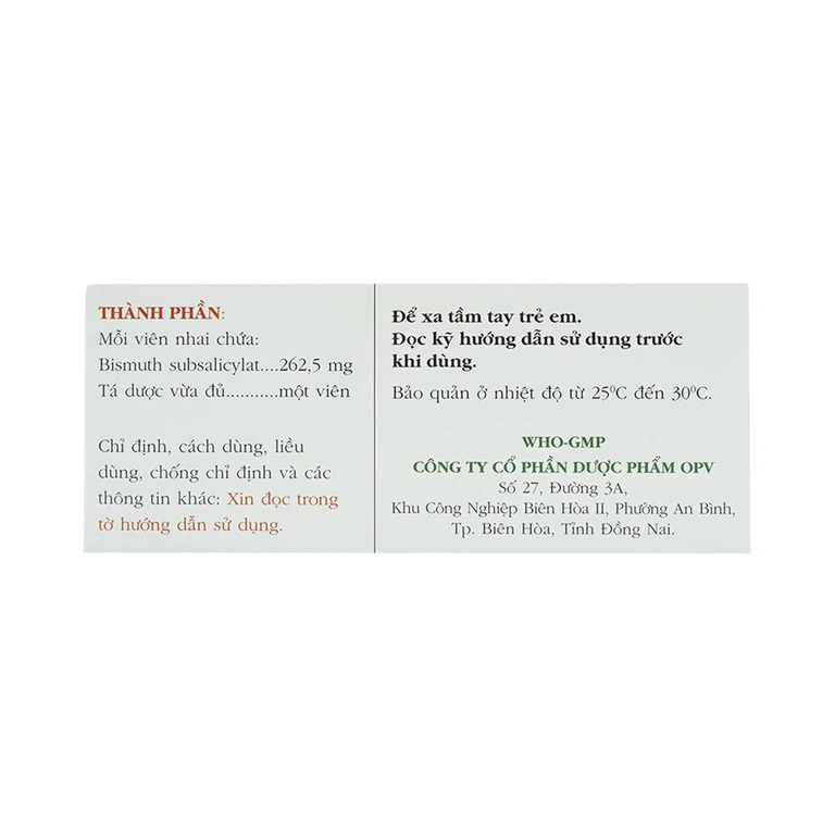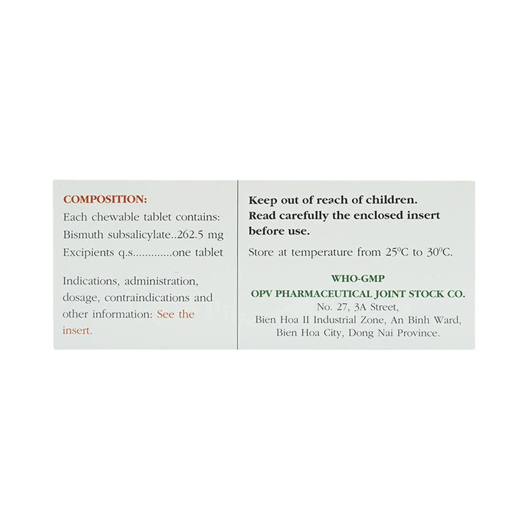 Viên nhai Ulcersep 262.5mg OPV giảm khó chịu ở dạ dày, chống tiêu chảy (10 vỉ x 10 viên)