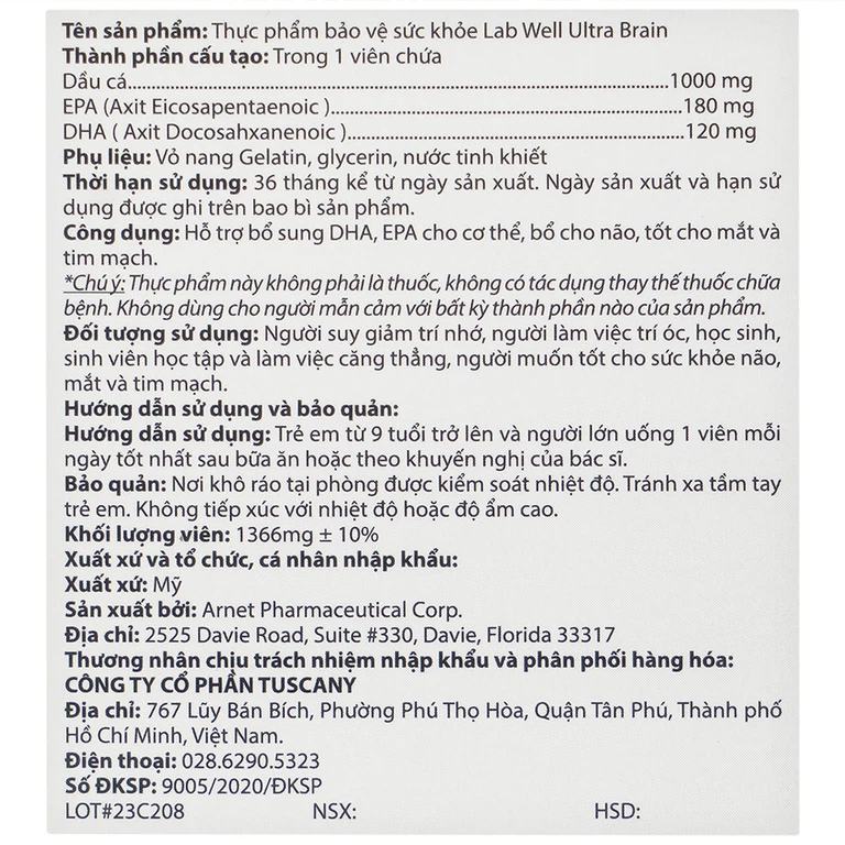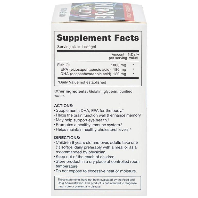 Ultra Brain Lab Well hỗ trợ bổ sung DHA, EPA cho cơ thể, bổ cho não, tốt cho mắt và tim mạch.