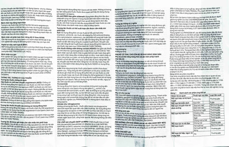Uperio có thể làm tăng ure máu và nồng độ creatinin huyết thanh trên bệnh nhân hẹp động mạch thận hai bên hoặc một bên, nên cần thận trọng khi dùng thuốc cho đối tượng này và thường xuyên theo dõi chức năng thận.