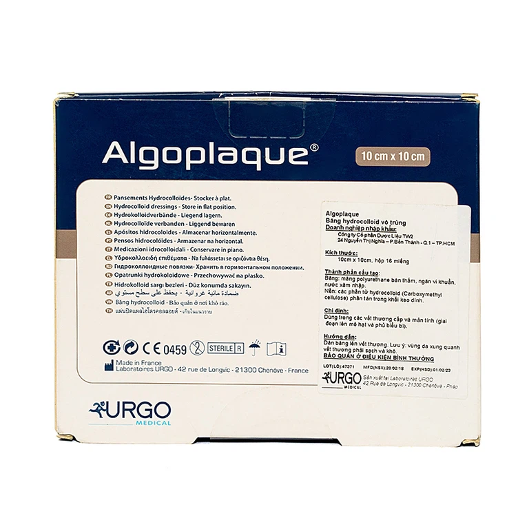 Băng dán có gạc vô trùng Algoplaque Urgo size 10cm x 10cm dùng để băng các vết thương (16 cái)
