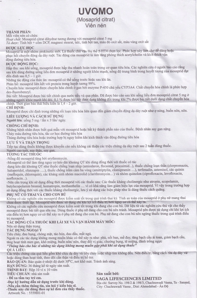Công dụng của Thuốc Uvomo Saga