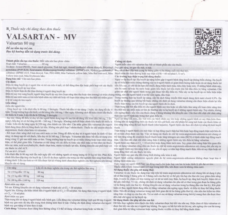 Công dụng của Thuốc Valsartan-MV 80mg