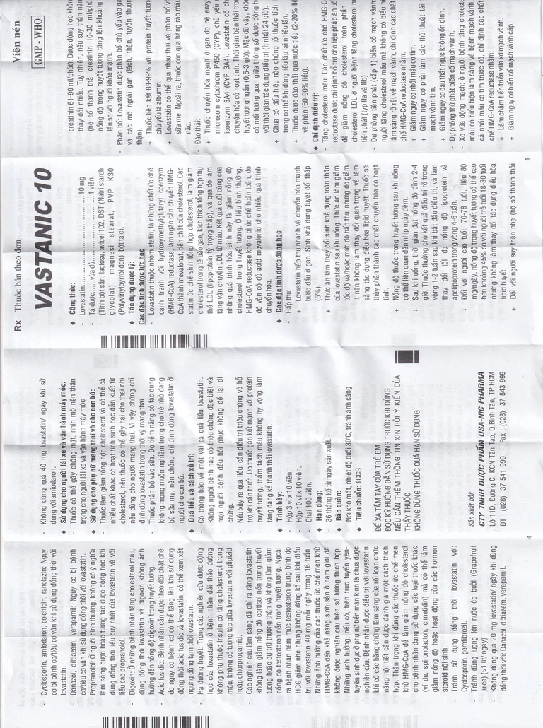 Công dụng của Thuốc Vastanic 10
