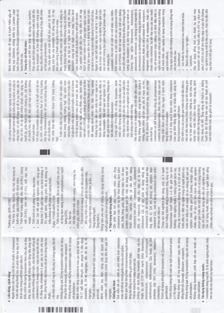- Không dùng quá 20 mg lovastatin/ ngày khi dùng đồng thời với: Danazol, diltiazem, verapamil.