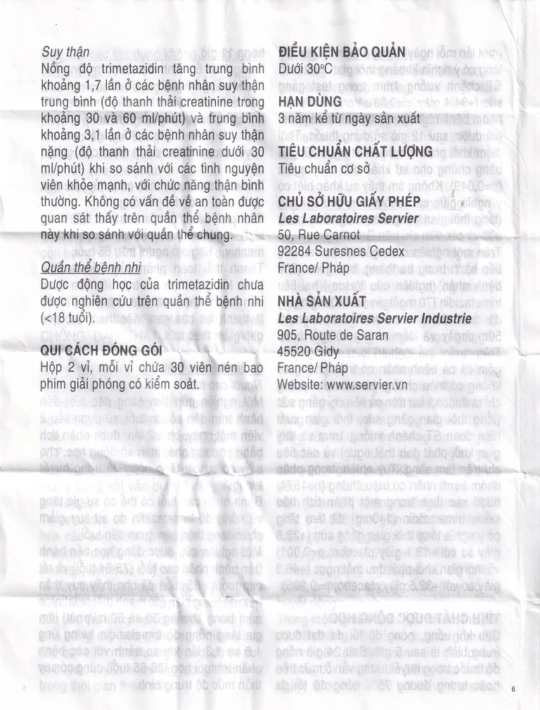 Trẻ em:Độ an toàn và hiệu quả của trimetazidin ở trẻ em dưới 18 tuổi chưa được thiết lập.
