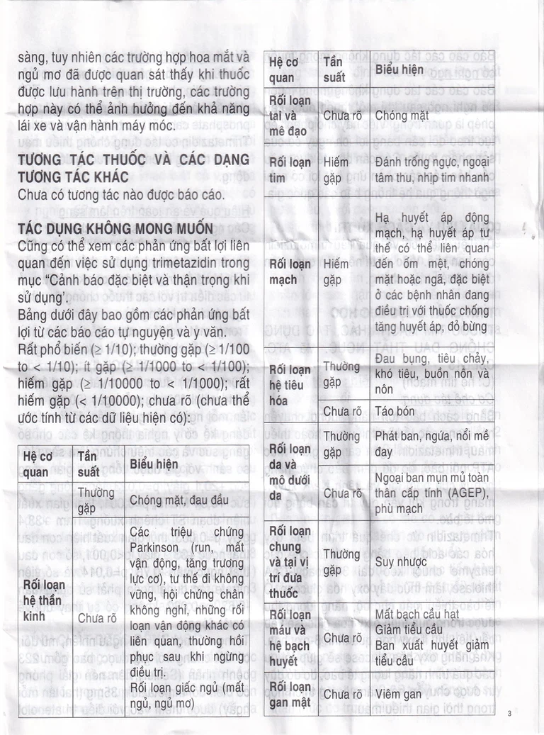 Khi xảy ra các rối loạn vận động như triệu chứng parkinson, hội chứng chân không nghỉ, run, tư thế đi không vững, cần ngưng sử dụng trimetazidin.
