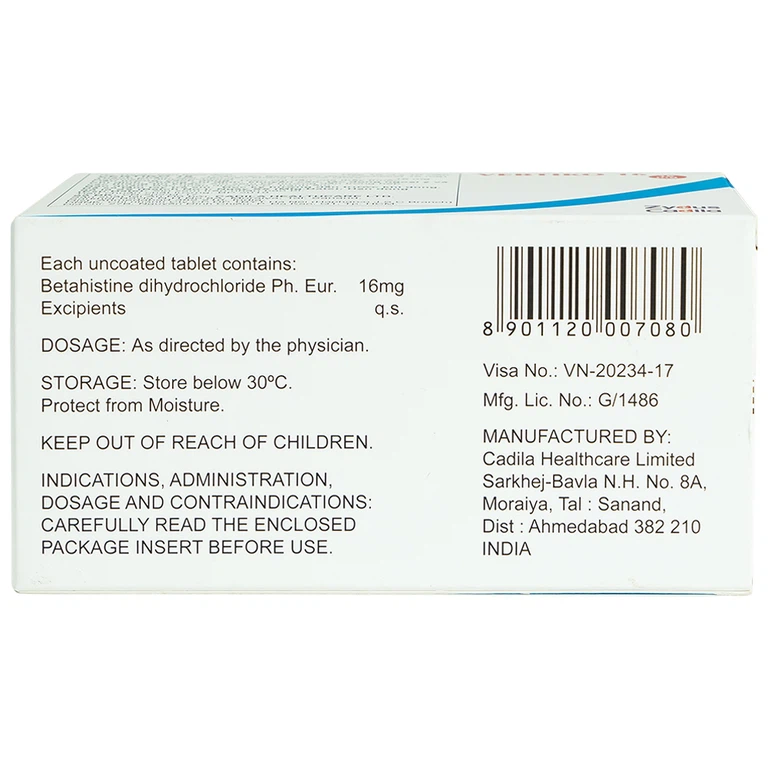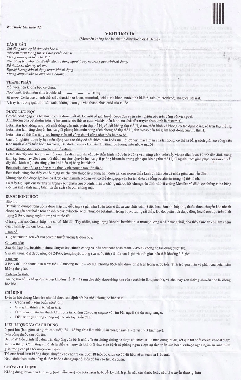 Vertiko 16mg dạng viên nén dùng đường uống. Nên uống thuốc sau bữa ăn.
