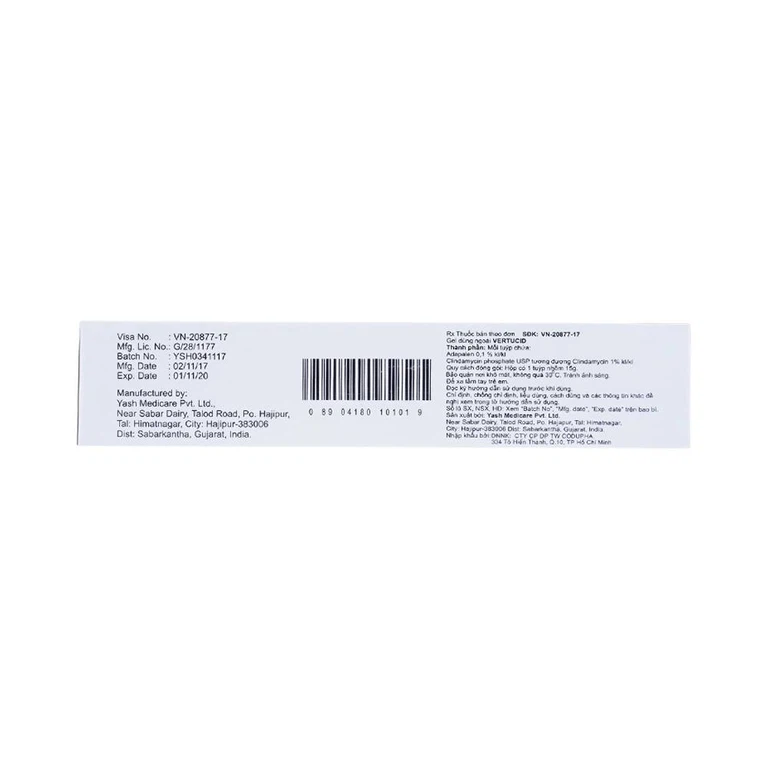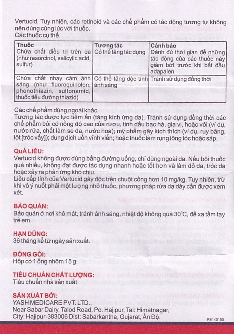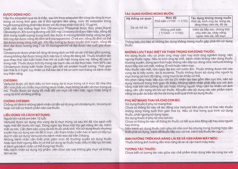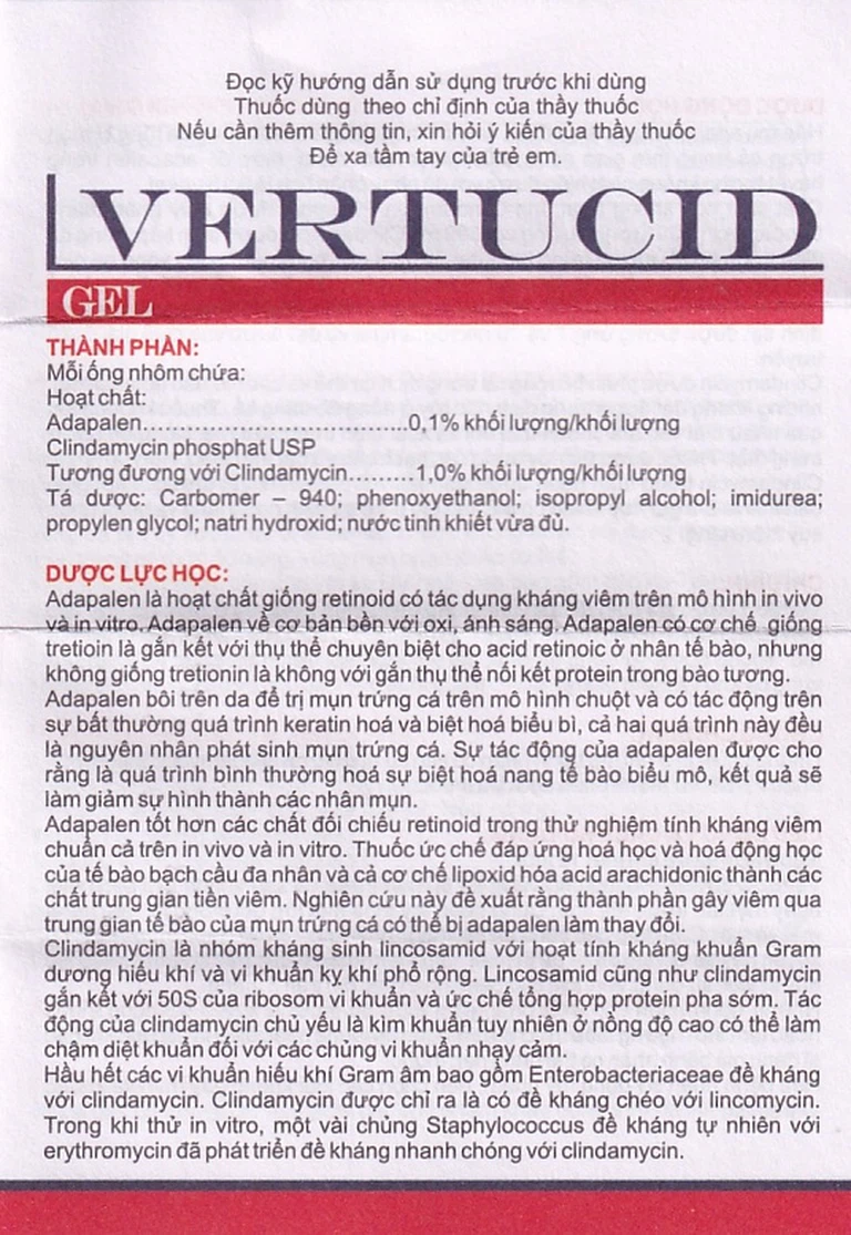 Vertucid được sử dụng cho vùng da bị mụn trứng cá mỗi ngày một lần trước khi ngủ.