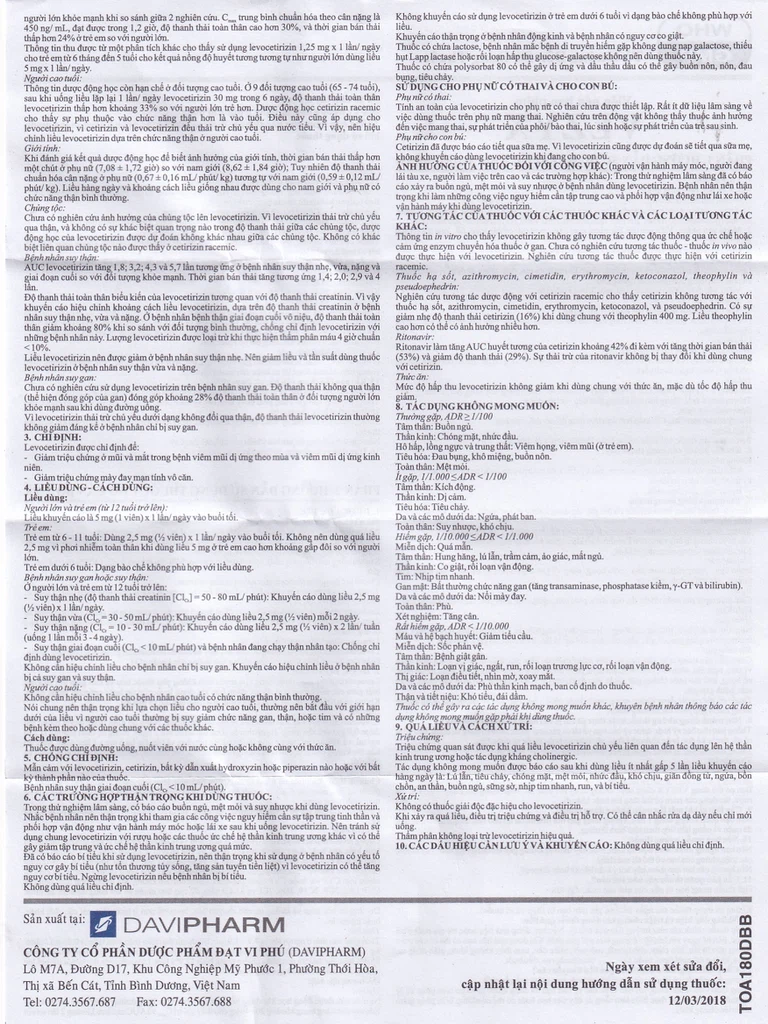 Thuốc Vezyx 5mg Davipharm điều trị viêm mũi dị ứng, mày đay (2 vỉ x 14 viên)