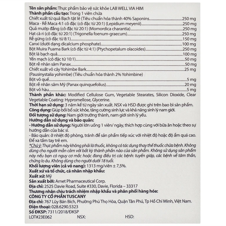 Via Him Lab Well giúp bồi bổ sức khỏe, tăng cường sinh lực và khả năng sinh lý ở nam giới.