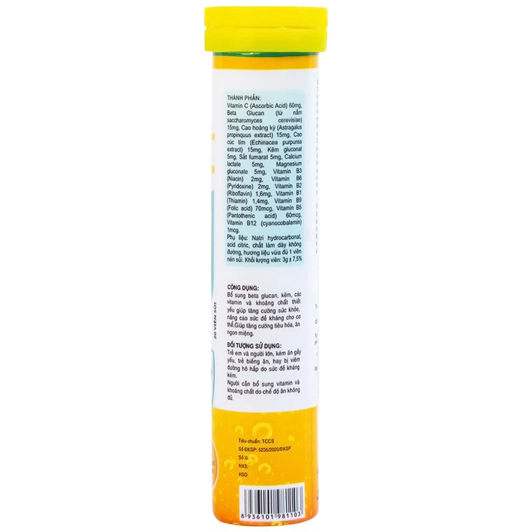 Viên sủi không đường Immune++ bổ sung beta glucan, kẽm, các vitamin và khoáng chất thiết yếu giúp tăng cường sức khỏe, nâng cao sức đề kháng cho cơ thể, giúp tăng cường tiêu hóa ăn ngon miệng.