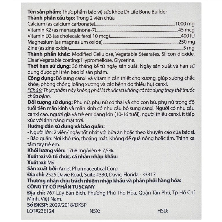 Bone Builder Drlife bổ sung canxi và vitamin cần thiết cho xương, giúp xương chắc khỏe, phòng chống loãng xương và các bệnh do thiếu hụt canxi.