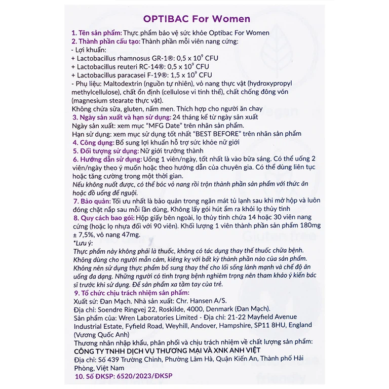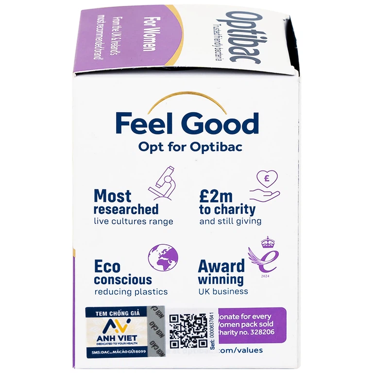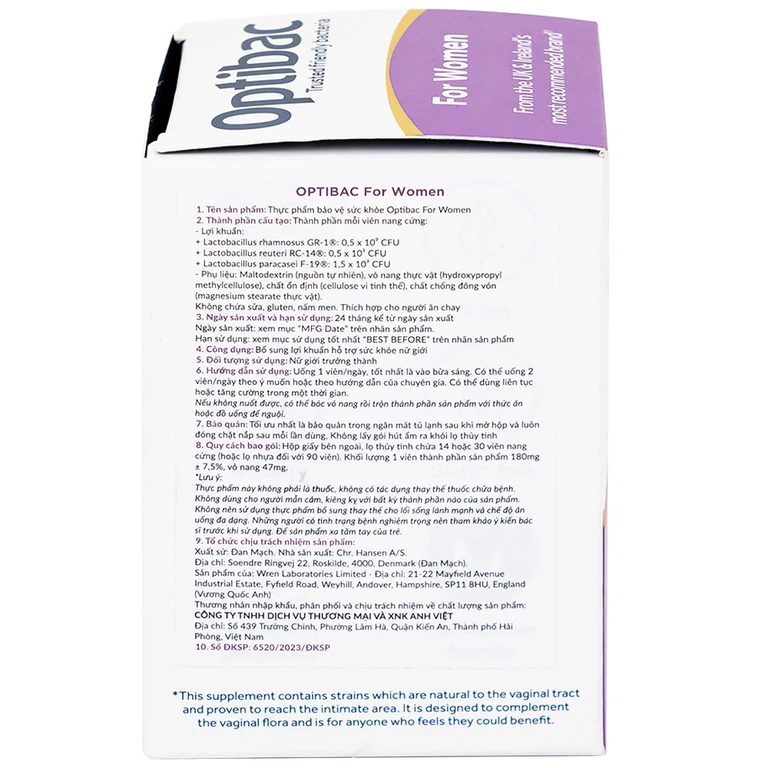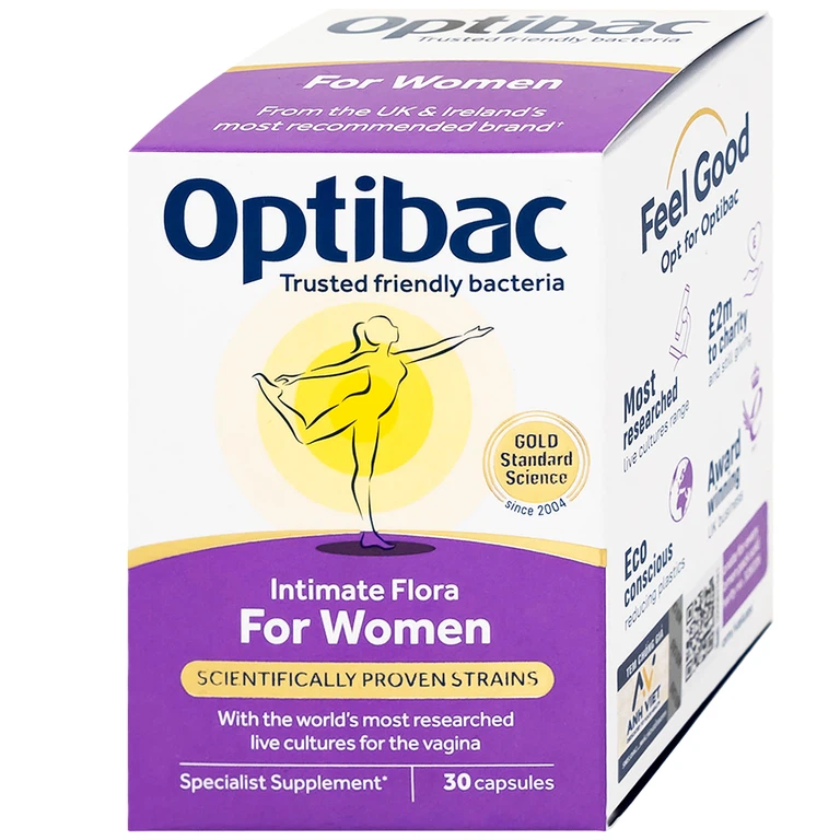 Men vi sinh Optibac For Women là giải pháp đáng tin cậy cho những người phụ nữ đang tìm kiếm một sản phẩm bổ sung vi khuẩn hỗ trợ cho hệ vi sinh vùng kín. Sản phẩm chứa hai chủng vi khuẩn sống, Lactobacillus rhamnosus GR-1® và Lactobacillus reuteri RC-14®, đã được nghiên cứu rộng rãi và thử nghiệm lâm sàng ở hơn 2.500 phụ nữ trên khắp thế giới và cho thấy được hiệu quả duy trì hệ vi sinh vật âm đạo khỏe mạnh nhờ bổ sung lợi khuẩn âm đạo bằng cách tiếp cận đường âm đạo mà không đi qua đường ruột.