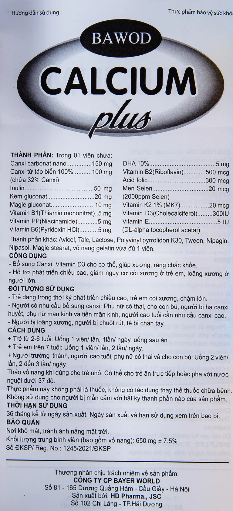 Bawod Calcium Plus bổ sung Canxi, Vitamin D3 cho cơ thể, giúp xương, răng chắc khỏe. Hỗ trợ phát triển chiều cao, giảm nguy cơ còi xương ở trẻ em, loãng xương ở người lớn.