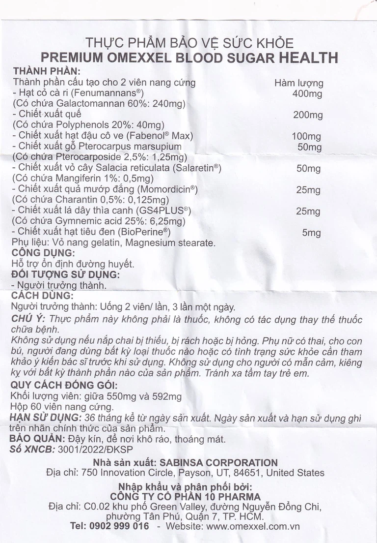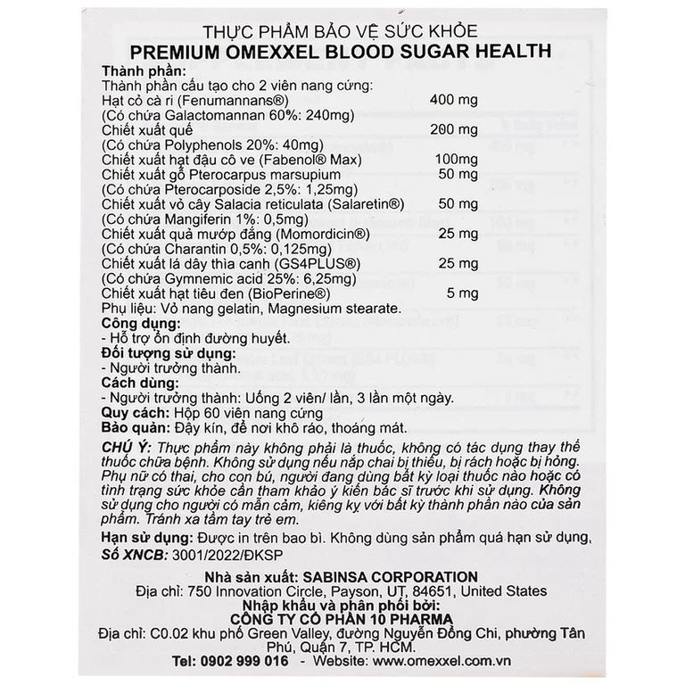 Premium Omexxel Blood Sugar Health hỗ trợ ổn định đường huyết.