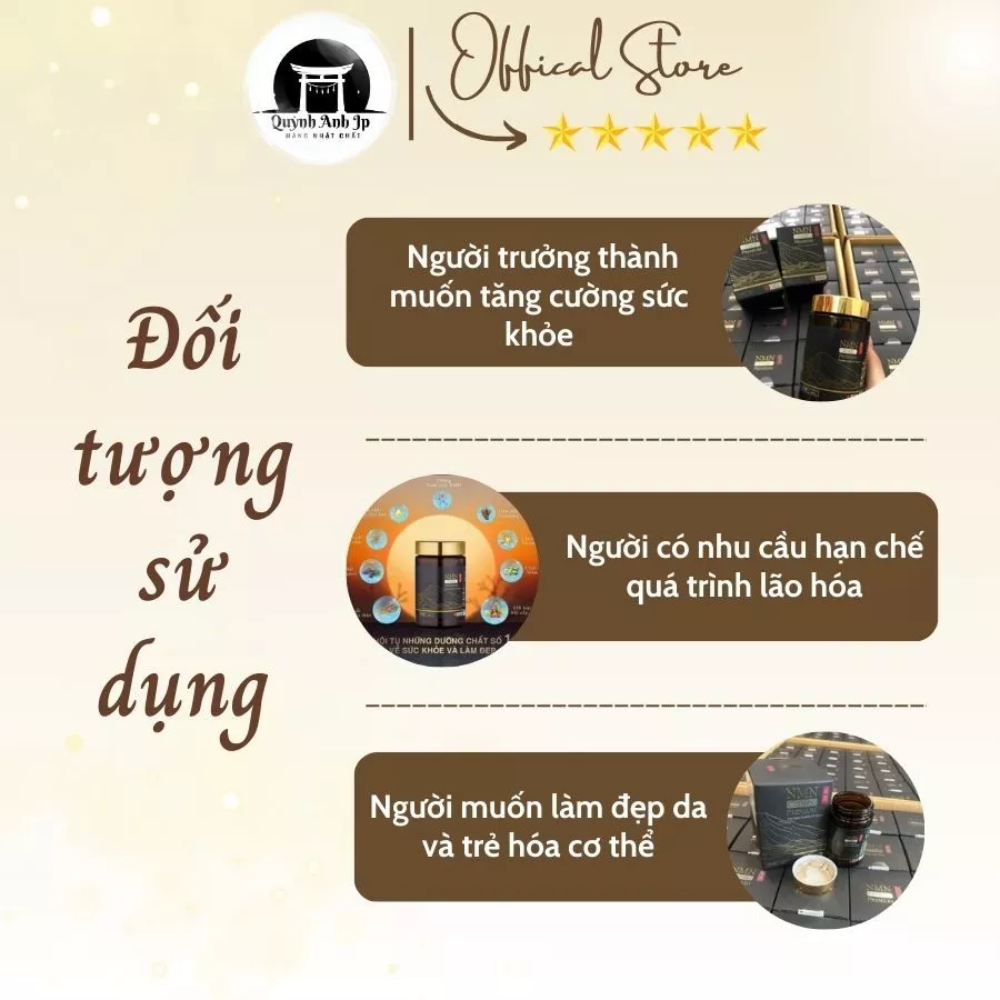 - Hỗ trợ bổ sung NMN (tiền chất của NAD+), giúp tăng cường năng lượng và hỗ trợ quá trình sửa chữa tự nhiên của tế bào, góp phần làm chậm quá trình lão hóa.