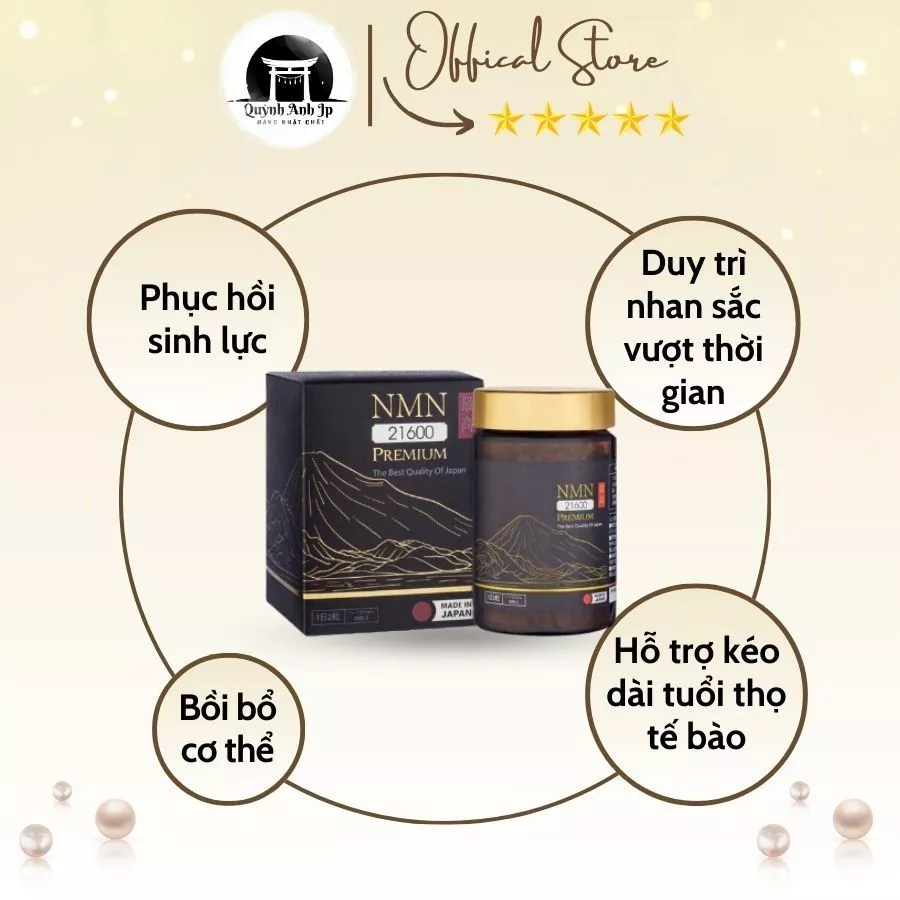 Viên uống NMN Premium 21600 là thực phẩm bảo vệ sức khỏe cao cấp đến từ Nhật Bản, nổi bật với công thức kết hợp NMN (Nicotinamide Mononucleotide) tinh khiết cùng một phức hợp gồm nhiều thành phần quý giá. Sản phẩm được nghiên cứu với mục tiêu hỗ trợ bồi bổ cơ thể, tăng cường năng lượng và góp phần làm chậm quá trình lão hóa tự nhiên.