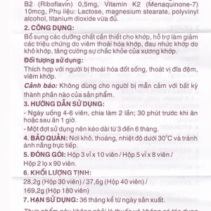 - Hỗ trợ quá trình tái tạo sụn khớp, góp phần làm chậm quá trình thoái hóa sụn khớp.