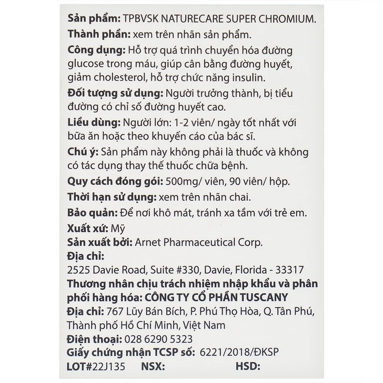 Super Chromium 250mcg NatureCare hỗ trợ chuyển hóa đường glucose trong máu, giúp cân bằng đường huyết, giảm cholesterol, hỗ trợ chức năng insulin.