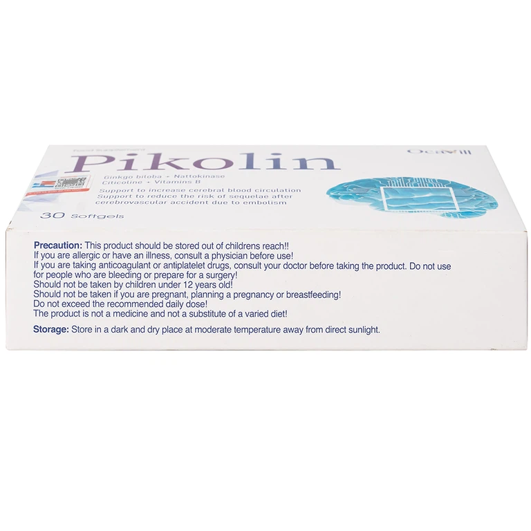 Pikolin Ocavill là sản phẩm được nhập khẩu từ Bulgaria, thích hợp sử dụng cho người thiểu năng tuần hoàn máu não, người có nguy cơ hình thành cục máu đông, người sau tai biến mạch máu não do tắc mạch. Sản phẩm không dùng cho trẻ em dưới 12 tuổi.