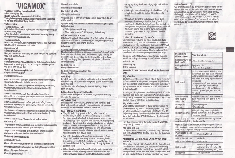 Có rất ít hoặc không có dữ liệu về việc sử dụng dung dịch nhỏ mắt Vigamox trên phụ nữ mang thai. Tuy nhiên dự kiến thuốc không ảnh hưởng đối với phụ nữ mang thai vì sự hấp thu toàn thân moxifloxacin từ chế phẩm nhỏ mắt là không đáng kể.