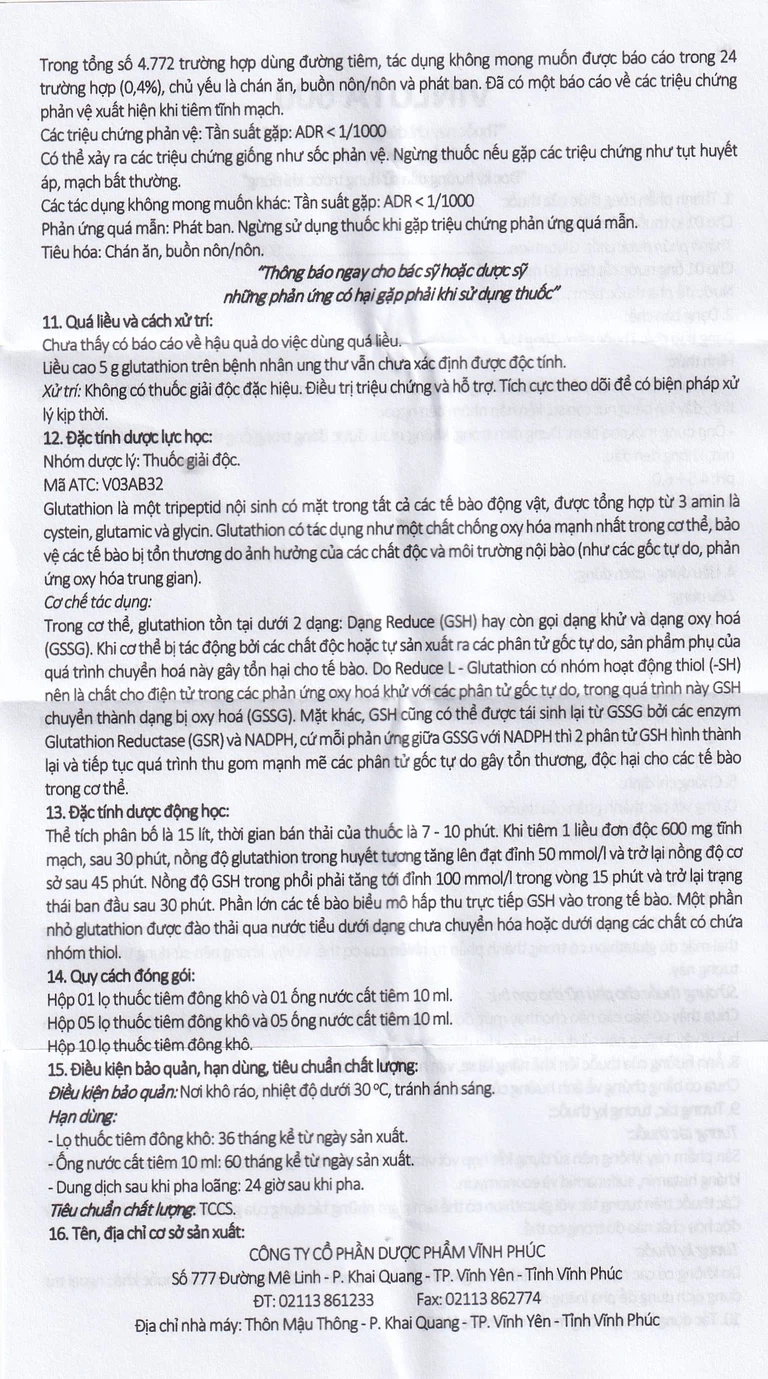 Liều cao 5g glutathion trên bệnh nhân ung thư vẫn chưa xác định được độc tính.