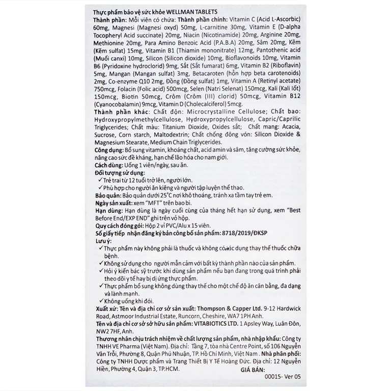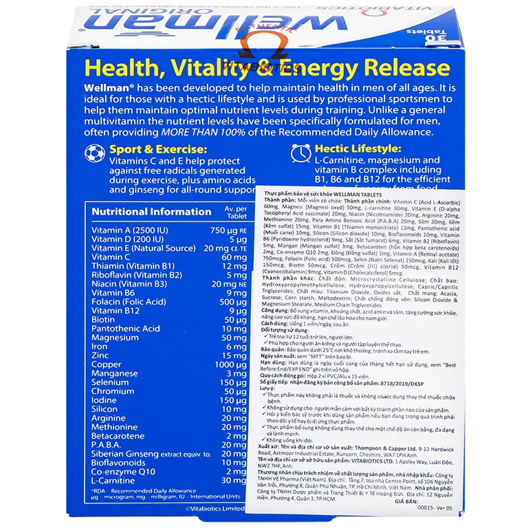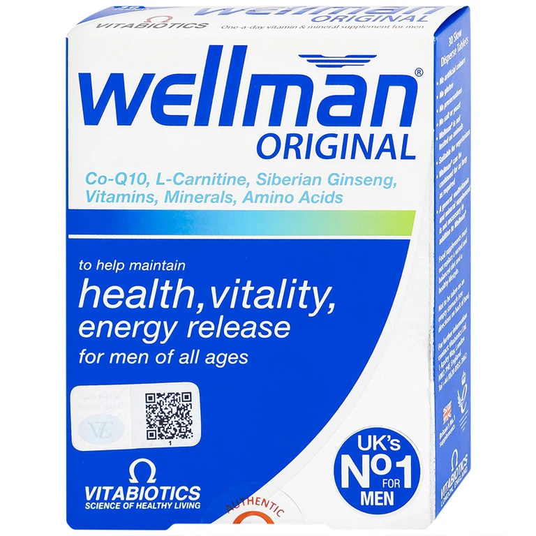Vitabiotics Wellman Original bổ sung vitamin, khoáng chất , acid amin và sâm cho cơ thể.