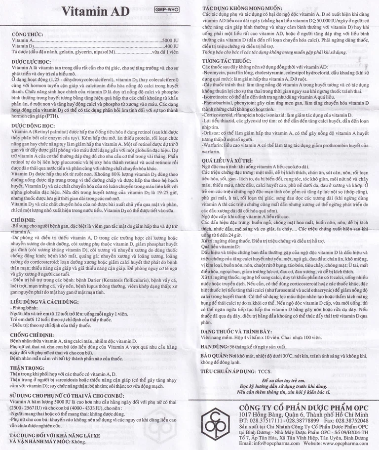 Các tác dụng phụ và tác dụng có hại do ngộ độc vitamin A, D sẽ xuất hiện khi dùng vitamin AD liều cao dài ngày (chẳng hạn liều vitamin D ≥ 50.000 IU/ngày ở người có chức năng cận giáp bình thường và nhạy cảm bình thường với vitamin D) hay khi uống phải một liều rất cao vitamin AD, hoặc ở người tăng đáp ứng với liều bình thường của vitamin D (dẫn đến rối loạn chuyển hóa calci).